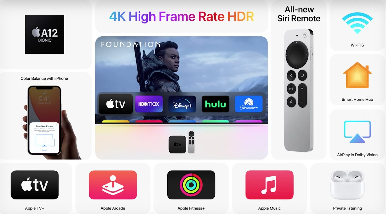 Nuevo procesador no solo para ver series, también para jugar con el Apple TV. Y lo que me voló la cabeza de este nuevo Apple TV es la calibración de colores que implementaron. Usando tu iPhone se va a calibrar el color 🤯.