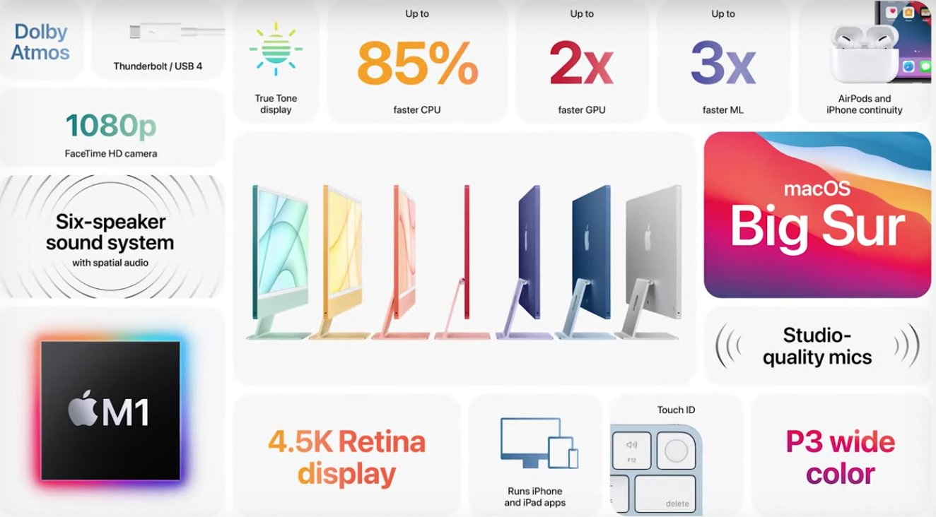 Esta nueva iMac tiene el nuevo chip de Apple M1 que es bestial por todo lo que he visto en reviews (aún me falta conseguirla para dar opinión personal 😢). Upgrade de la cámara (al fin) a HD 1080p. Aquí mi nerdo interior salió porque tiene un procesamiento de la cámara para mejorar la calidad de la imagen.