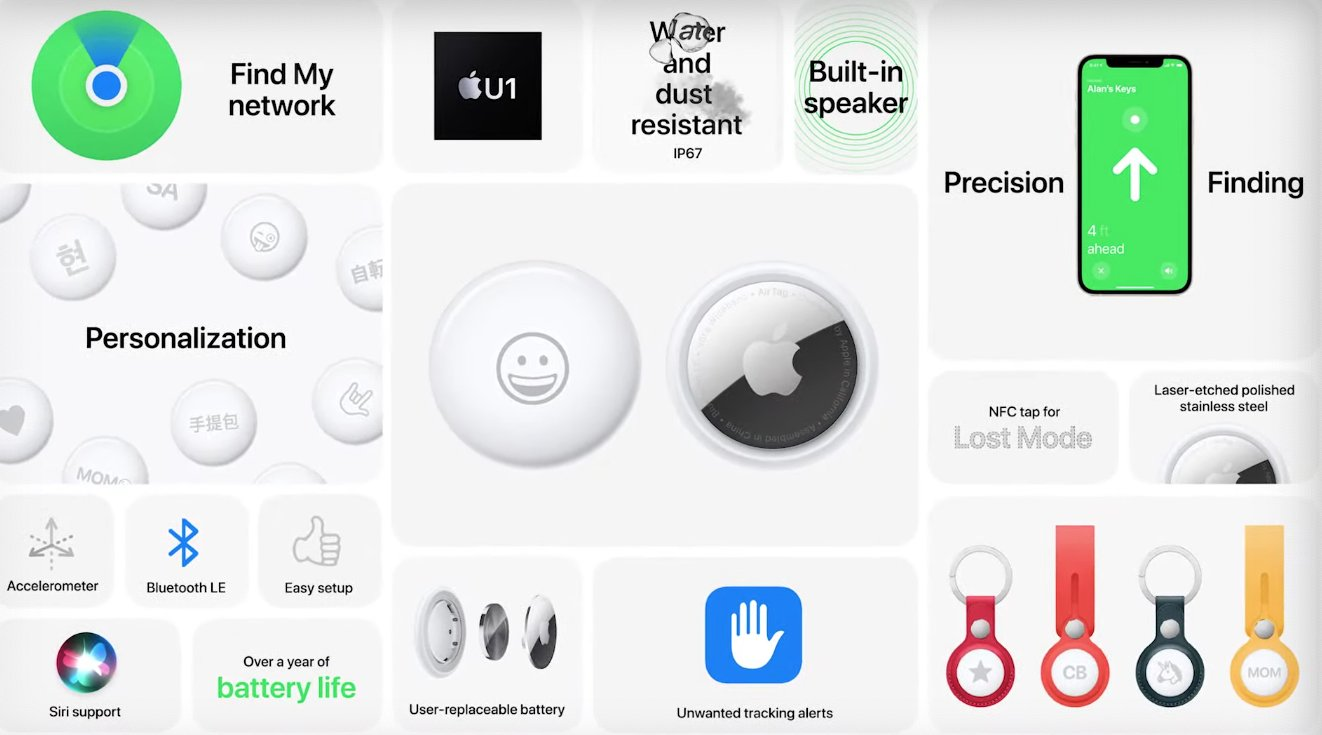 ¿Eres de los que pierden las llaves a diario? ¿Su cartera? ¿Mochila? ¿Estuche de lentes? ¿Absolutamente todo? Los AirTags son para ti (o tal vez dejar de ser tan descuidado con las cosas). Es un pequeño dispositivo que funcionará con la red de "Find My" que tiene Apple. Prometiendo privacidad ante todo este no es un dispositivo de rastreo de personas. Todos los datos son procesados in-device y nunca en la nube.